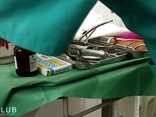 Свіжа і збуджена 19-річна дівчина Белла Енджел обстежена і змушена кінчити двома старими лікарями